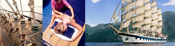 Star Clippers is commonly know as tall ships or tall ship cruising. A casual style of cruising with elegance accompanying it at the same time. You can do as much or as little as you like. Whether it be the Med, Caribbean, French Polynesia, Costa Rica, Far East or Ocean Crossings the crew onboard are very friendly and will even let you get involved in hoisting the sails. Whilst onboard you can also climb the mast so if you are interested in boating or an enthusiast this is really a great holiday. There are no schedules that you have to follow onboard; it's your holiday so you do as you wish. In term of entertainment, Star Clipper is not like an Ocean Liner so in the evening everybody tends to head for the piano bar where you can have a sing along together or just do your own thing. Local musicians and entertainment comes aboard in the evening sometimes depending on where you are cruising, but one thing is for sure because of the size of the ship, there is a real sense of togetherness. In the evening before venturing to the piano bar you will eat in the restaurant with its open seating dining with no need for any reservations. |